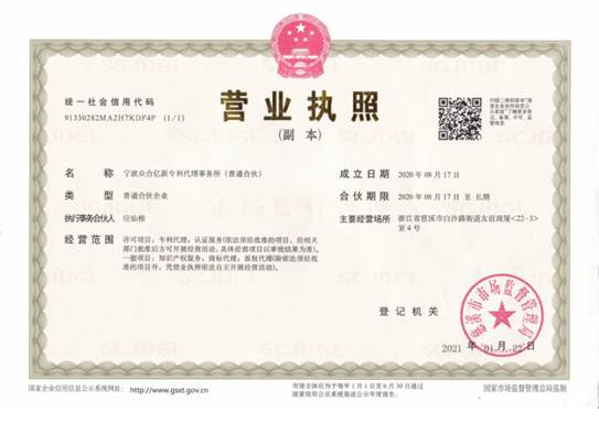 浙江億新知識(shí)產(chǎn)權(quán)服務(wù)有限公司前身為慈溪眾合知識(shí)產(chǎn)權(quán)代理事務(wù)所,創(chuàng)始于2004年,為了服務(wù)更多的創(chuàng)新企業(yè),實(shí)現(xiàn)“服務(wù)億萬(wàn)創(chuàng)新企業(yè)”的理念,后更名為浙江億新知識(shí)產(chǎn)權(quán),旗下公司包括:寧波眾合億新專利代理事務(wù)所(機(jī)構(gòu)代碼33405)、中范(北京)認(rèn)證有限公司。其中寧波眾合億新專利代理事務(wù)所是慈溪市科技服務(wù)聯(lián)盟理事單位,前灣區(qū)知識(shí)產(chǎn)權(quán)工作站。公司位于浙江省慈溪市文化商務(wù)區(qū)友誼商廈,并在北京、青島設(shè)有辦事處。
